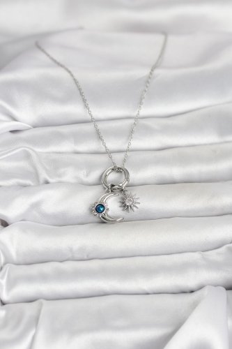 • Naszyjnik damski z zawieszką w kształcie dnia i nocy, wykonany ze stali nierdzewnej 316L w kolorze srebrnym