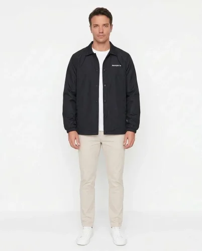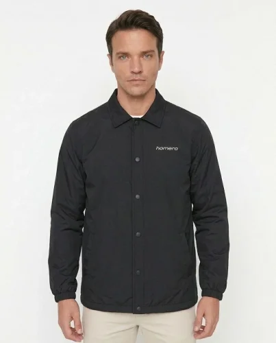 • Męska kurtka przeciwdeszczowa, podszewka, zapinana na zatrzaski, kieszeń wewnętrzna i zewnętrzna, sezonowa – czarna
