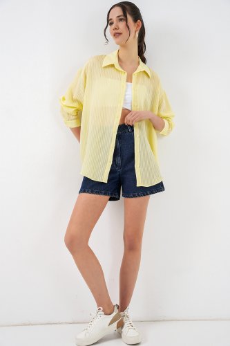 Długa koszula oversize 20320 - żółta