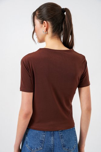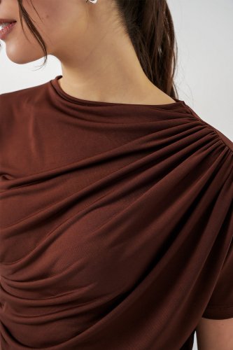 Bluzka Sandy z krótkim rękawem i marszczeniami 945 – brązowa