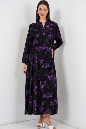 • Wzorzysta długa sukienka hidżabowa 2585 - E.Black