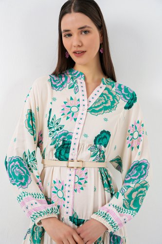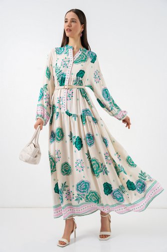 • Wzorzysta długa sukienka hidżabowa 2585 - zielona 1