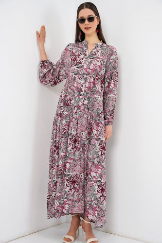 Wzorzysta długa sukienka hidżabowa 2585 – ciemnoszara