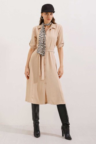 • Beżowa sukienka koszulowa z paskiem 2442