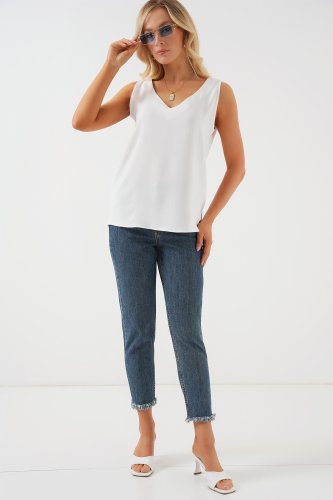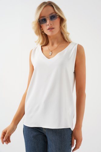 Bluzka bez rękawów z dekoltem w serek 950 - biała