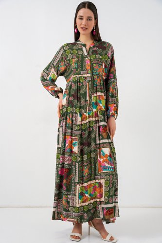• Wzorzysta długa sukienka hidżabowa 2585 – ciemnozielona