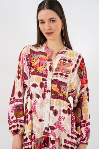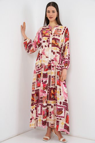 • Wzorzysta długa sukienka hidżabowa 2585 - E. Orange
