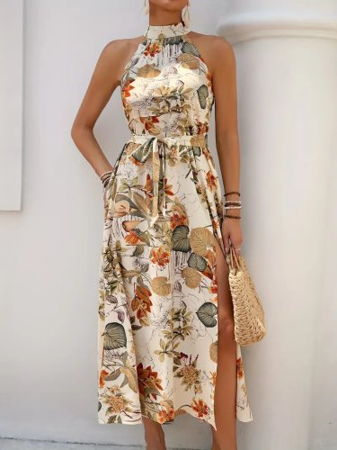 Sukienka damska z odkrytymi ramionami i rozcięciem na dekolcie typu halter, z kwiatowym nadrukiem, Supreme