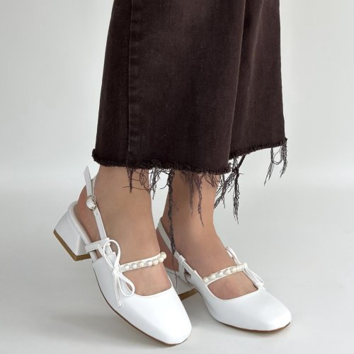 • Ceyda Białe skórzane buty na wysokim obcasie