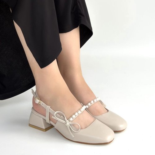 • Ceyda Beżowe Skórzane Buty na Wysokim Obcasie
