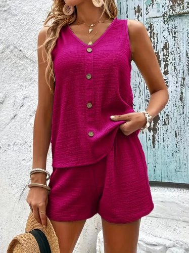 • Dwuczęściowy komplet damski, bez rękawów, z dekoltem w serek, wykonany z tiulu: bluzka i szorty.